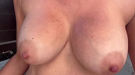 Esposa MILF embarazada ordeñando sus enormes tetas lactantes en un lugar público al aire libre 5 min
